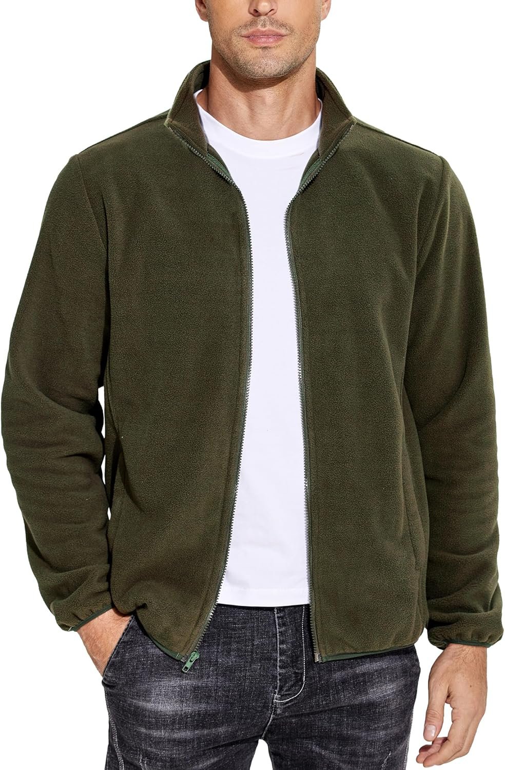 • REGULAR FIT: Men lightweight fleece jacket with a stand collar style and full zippered design, reinforced stitching and anti-pill fabric ensure long-lasting performance and appearance.Our mens zip front jacket features 2 deep side pockets and 2 roomy interior pockets, to better store your belongings while you hiking or other activities.