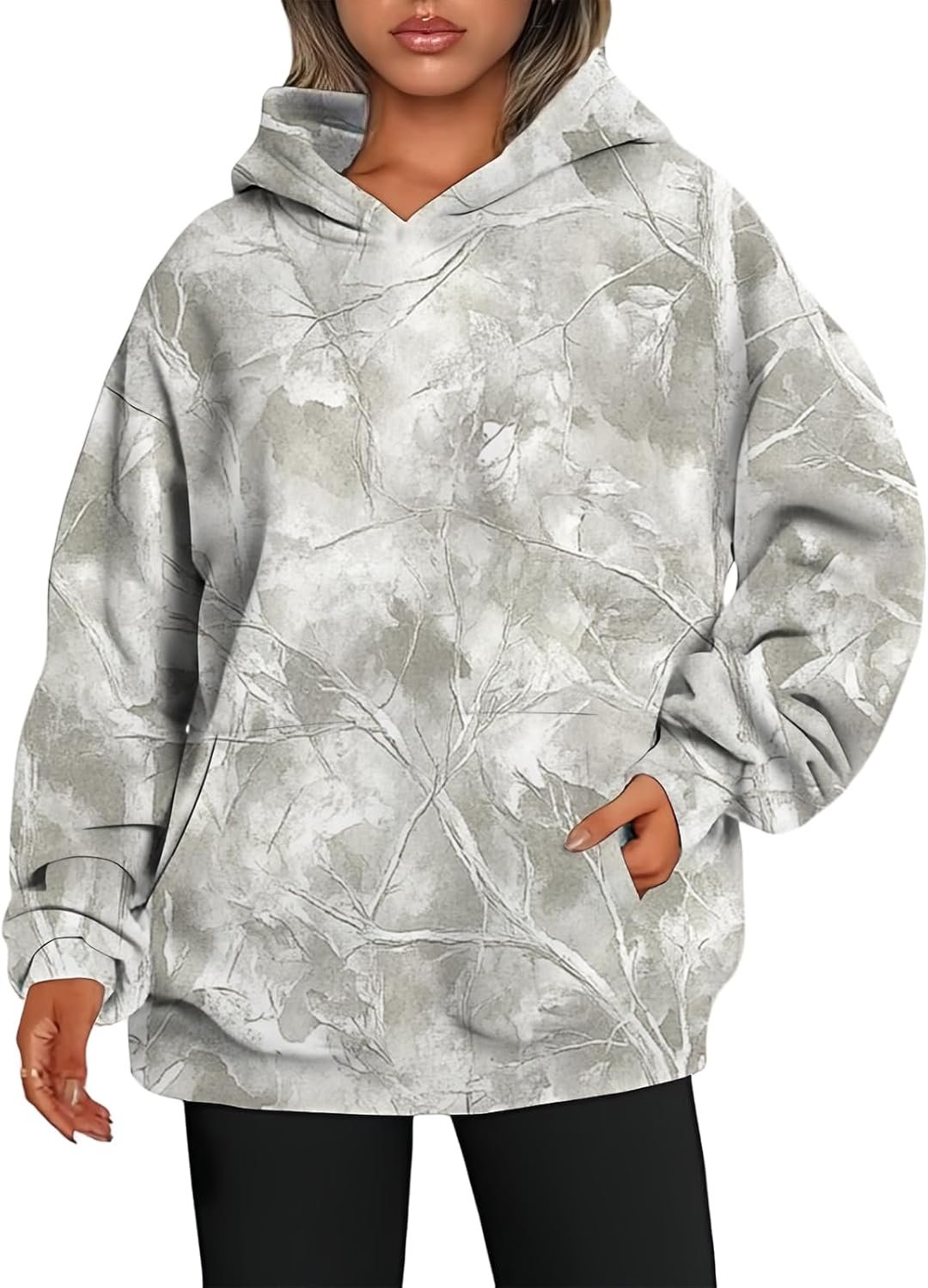 Women’s Camo Hoodie Maple Leaf Print Oversized Hooded Sweatshirt Fleece Casual Long Sleeve Pullover Sweatshirts with Pockets