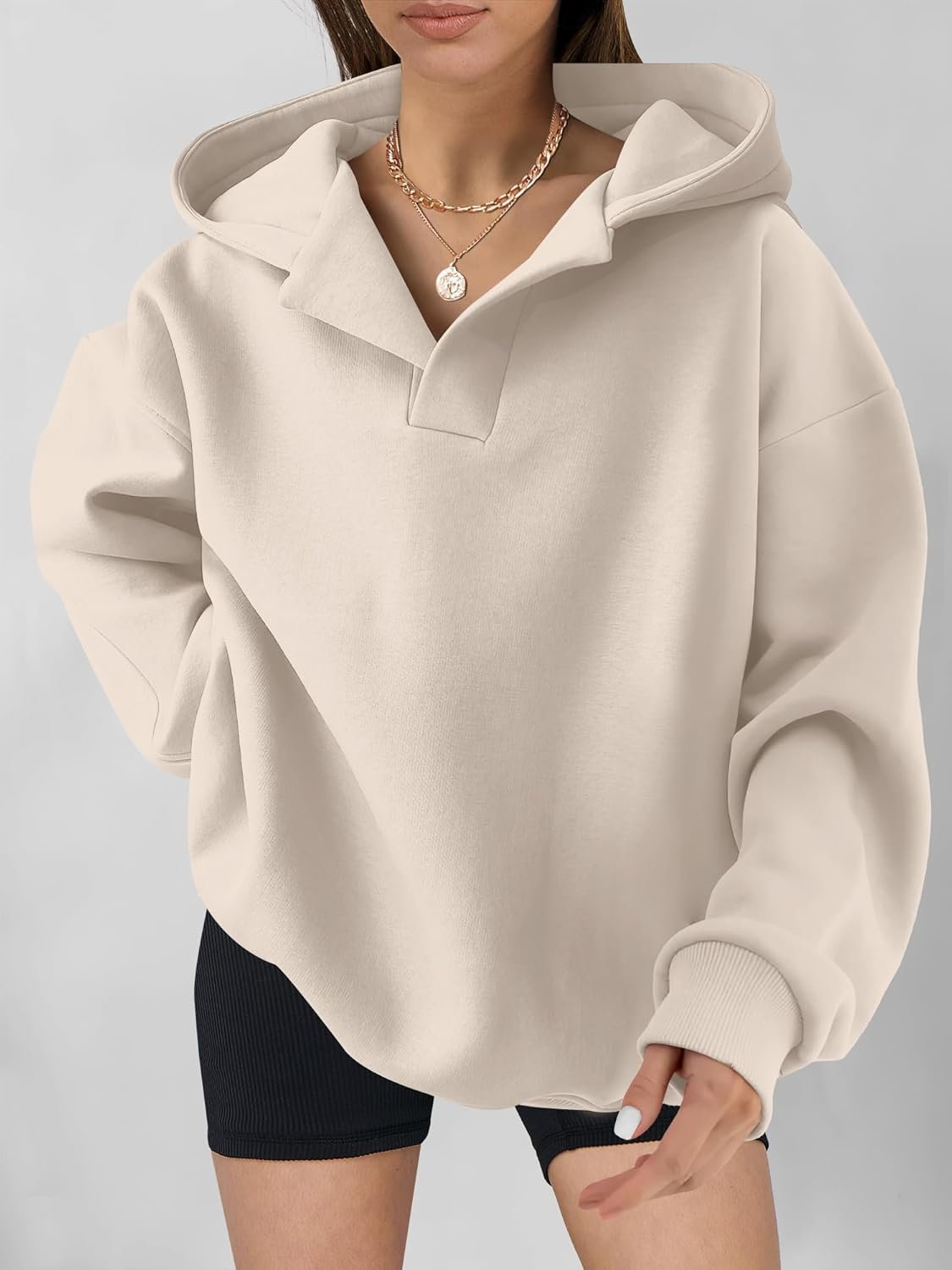 Womens Oversized Hoodies V Neck Sweatshirts Long Sleeve Pullover Casual Fall Teen Girls Preppy Clothes 2024 Trendy